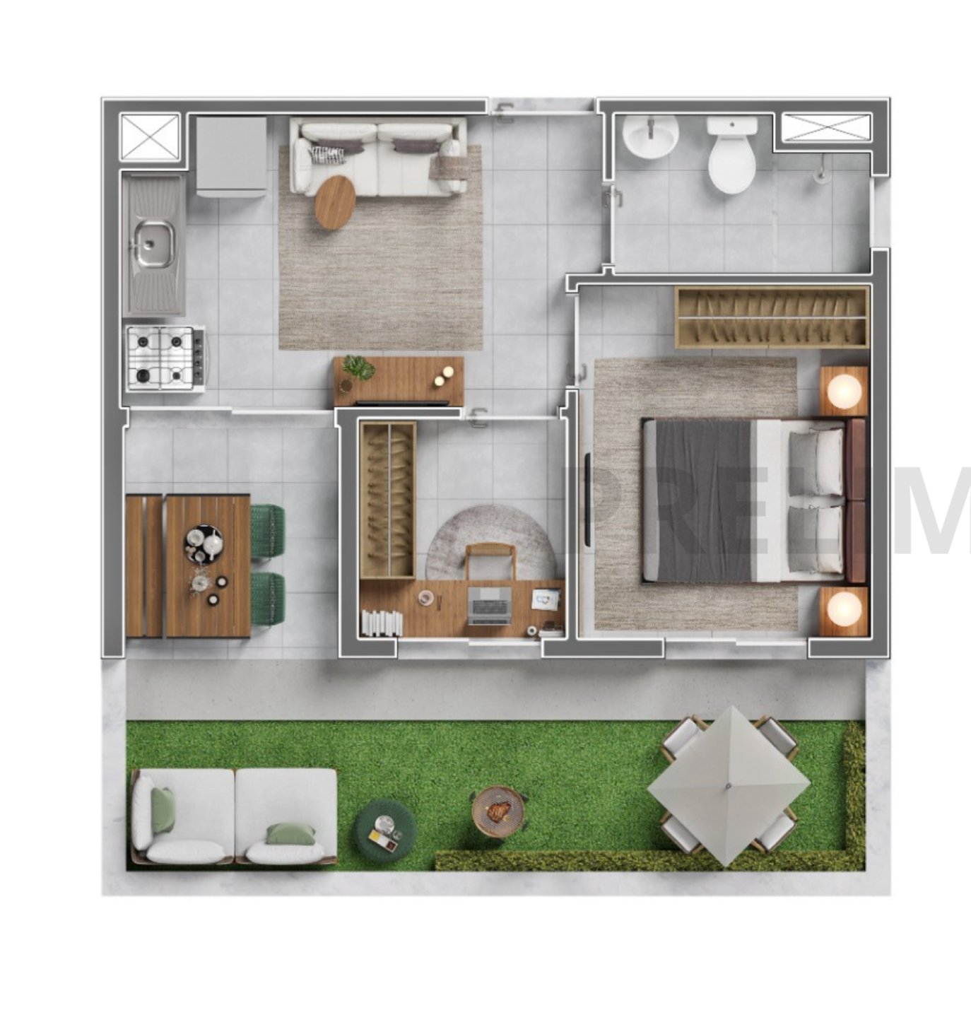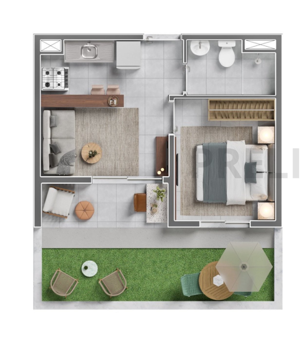 27m² com Terraço – 1 Dormitório