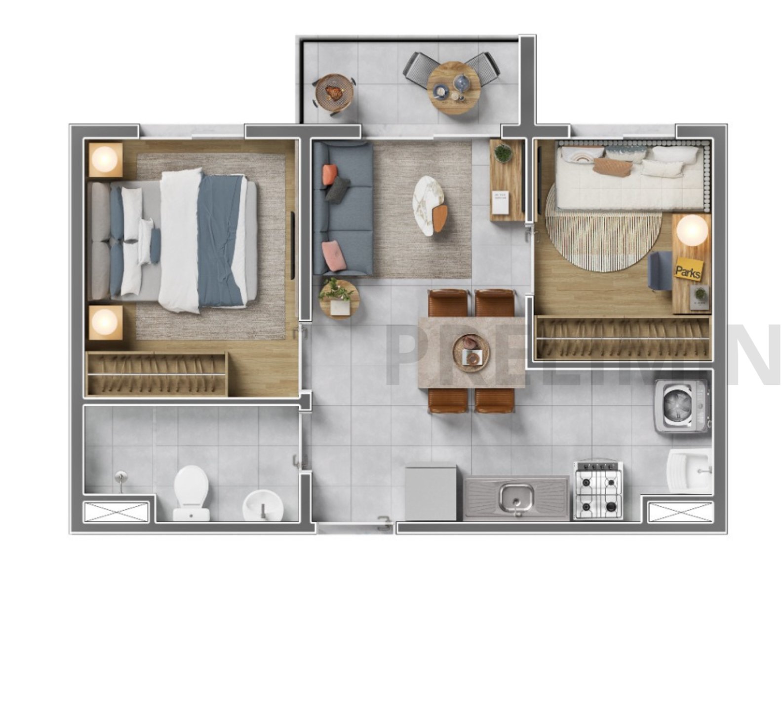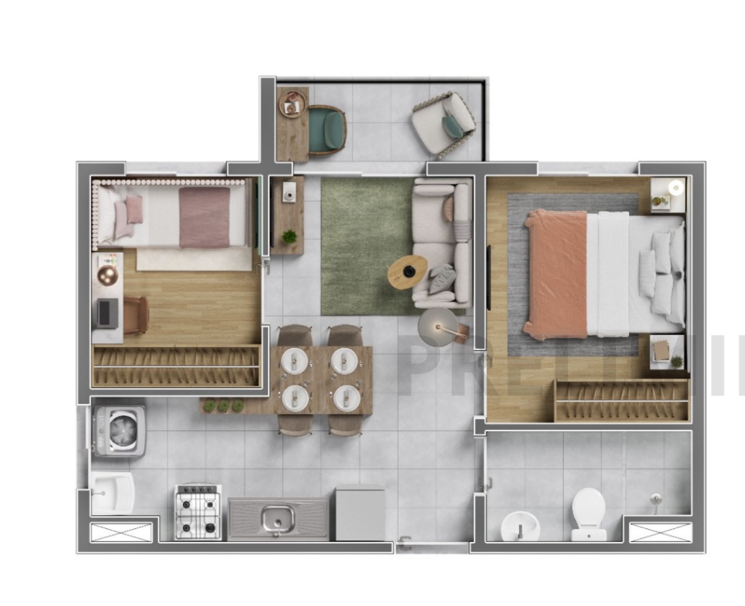 36m² com Varanda – 2 Dormitórios