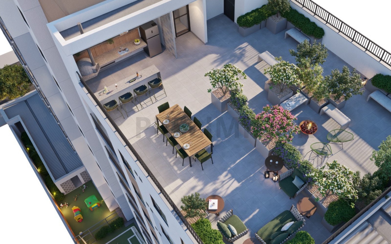Campinho, Pomar, roof top com espaço gourmet